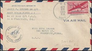 Postmarked from USS John L. Williamson DE-370. From the Bob Govern collection.