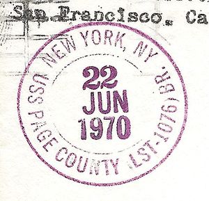 This section lists active links to the pages displaying covers associated with the ship. There should be a separate set of pages for each name of the ship (for example, Bushnell AG-32 / Sumner AGS-5 are different names for the same ship so there should be one set of pages for Bushnell and one set for Sumner). Covers should be presented in chronological order (or as best as can be determined).
