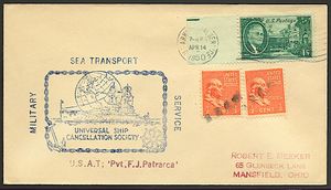 This section lists active links to the pages displaying covers associated with the ship. There should be a separate set of pages for each name of the ship (for example, Bushnell AG-32 / Sumner AGS-5 are different names for the same ship so there should be one set of pages for Bushnell and one set for Sumner). Covers should be presented in chronological order (or as best as can be determined).