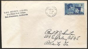 This section lists active links to the pages displaying covers associated with the ship. There should be a separate set of pages for each name of the ship (for example, Bushnell AG-32 / Sumner AGS-5 are different names for the same ship so there should be one set of pages for Bushnell and one set for Sumner). Covers should be presented in chronological order (or as best as can be determined).