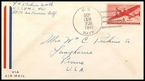 This section lists active links to the pages displaying covers associated with the ship. There should be a separate set of pages for each name of the ship (for example, Bushnell AG-32 / Sumner AGS-5 are different names for the same ship so there should be one set of pages for Bushnell and one set for Sumner). Covers should be presented in chronological order (or as best as can be determined).