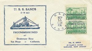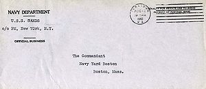 Note: Back of cover also has postmark from Destroyer Squadron 14.