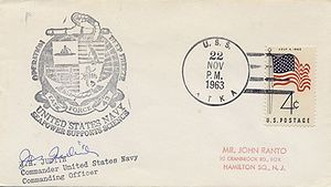 Black rubber stamp cachet, signed by the CO, Cmdr. Joseph H. Judith.