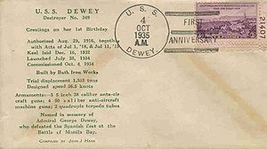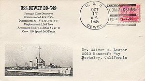 USS DEWEY DD 349 Covers Page 1