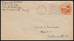 Posted from another ship or station...Ship had no post office