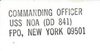 Return to USS NOA DD-841 Main Page