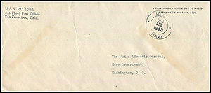 Posted from another ship or station...Ship had no post office