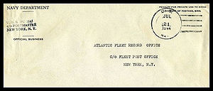 Posted from another ship or station...Ship had no post office