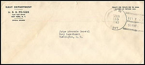 Posted from another ship or station...Ship had no post office