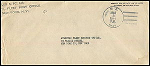 Posted from another ship or station...Ship had no post office