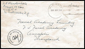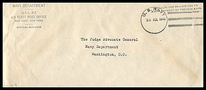 Censored, WWII use. Posted from another ship or station...Ship had no post office