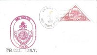 Violet rubberstamp ships crest...Black rubberstamp "WELCOME TO N.Y."