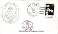 Back USPS routing mark (D1)...Black rubberstamp ship's crest...Black rubberstamp "OCT 24 1989"