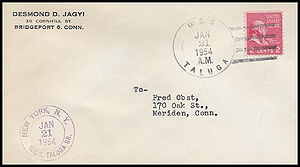 | Thumbnail Link To Cachet Close-Up Image | Thumbnail Link To Full Cover Front Image | Thumbnail Link To Postmark or Back Image | Primary Date Postmark Type Killer Bar Text --------- Cachet Category |