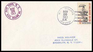 | Thumbnail Link To Cachet Close-Up Image | Thumbnail Link To Full Cover Front Image | Thumbnail Link To Postmark or Back Image | Primary Date Postmark Type Killer Bar Text --------- Cachet Category |
