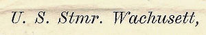 This section lists active links to the pages displaying covers associated with the ship. There should be a separate set of pages for each name of the ship (for example, Bushnell AG-32 / Sumner AGS-5 are different names for the same ship so there should be one set of pages for Bushnell and one set for Sumner). Covers should be presented in chronological order (or as best as can be determined).